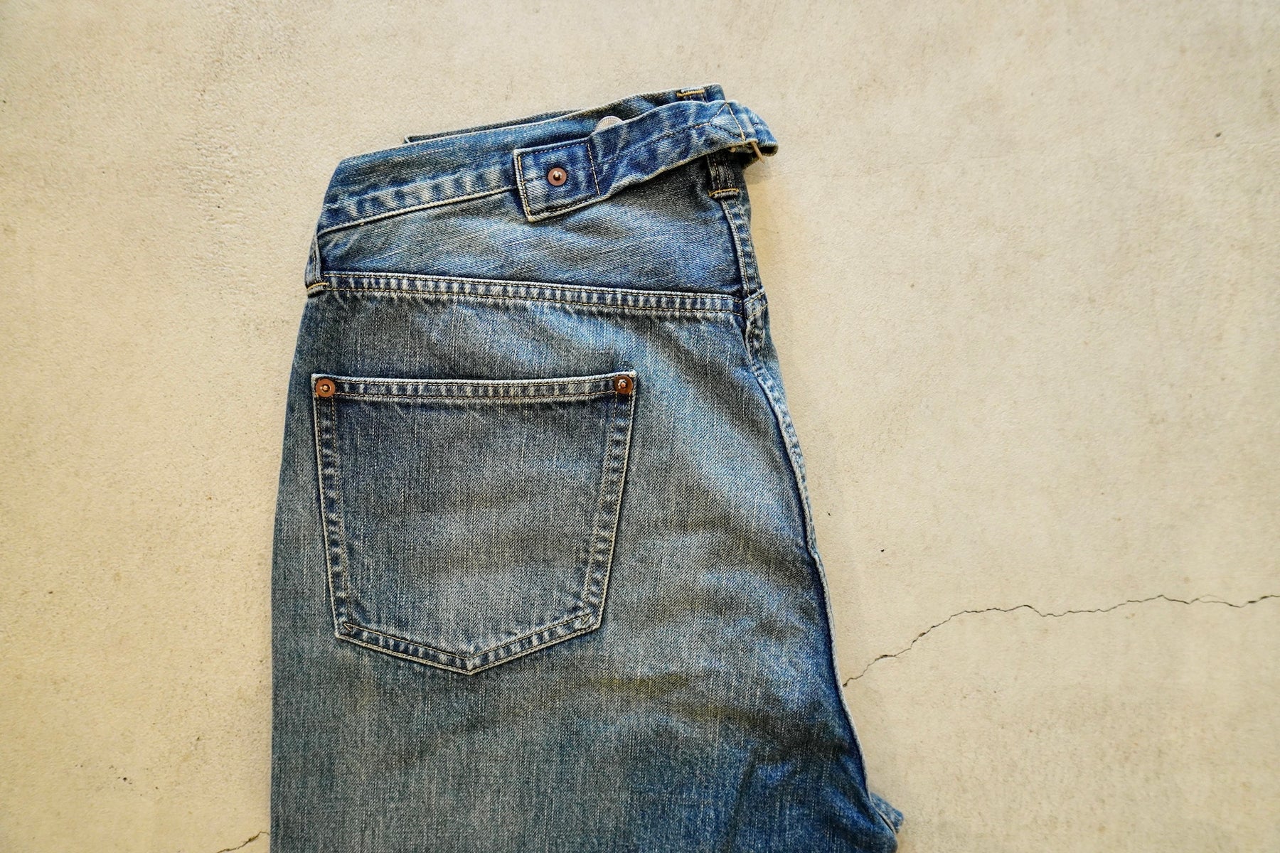 BIGINCHのデニムで稀に見られる、バックポケットが脇側に離れているバランスを活かし、完成されたデザインの中に遊びを入れている
