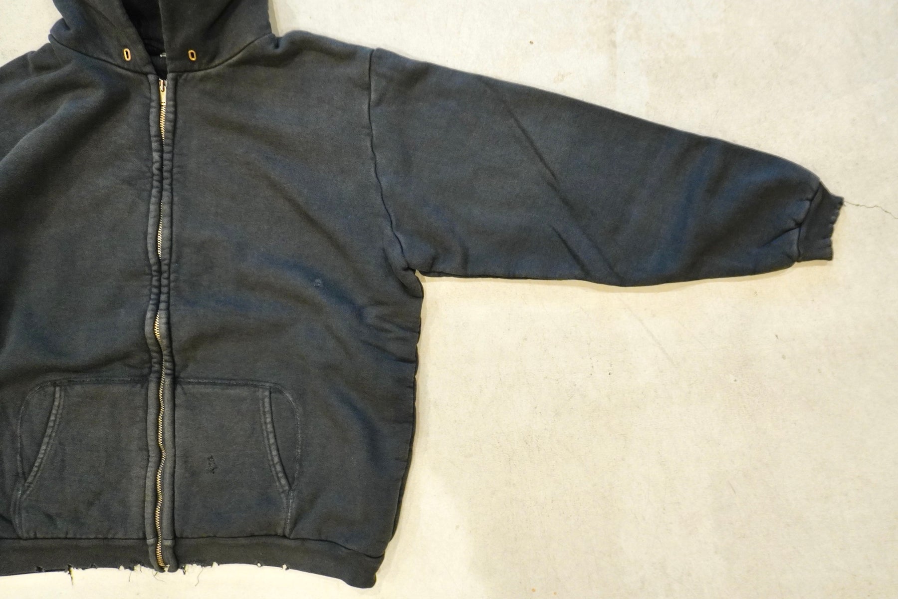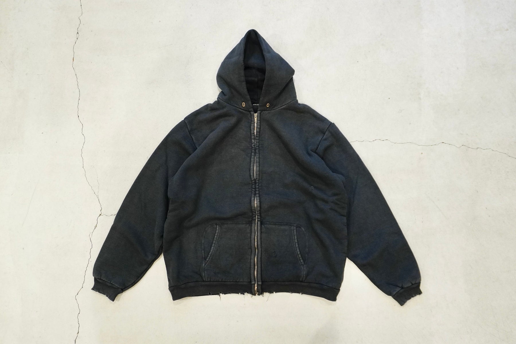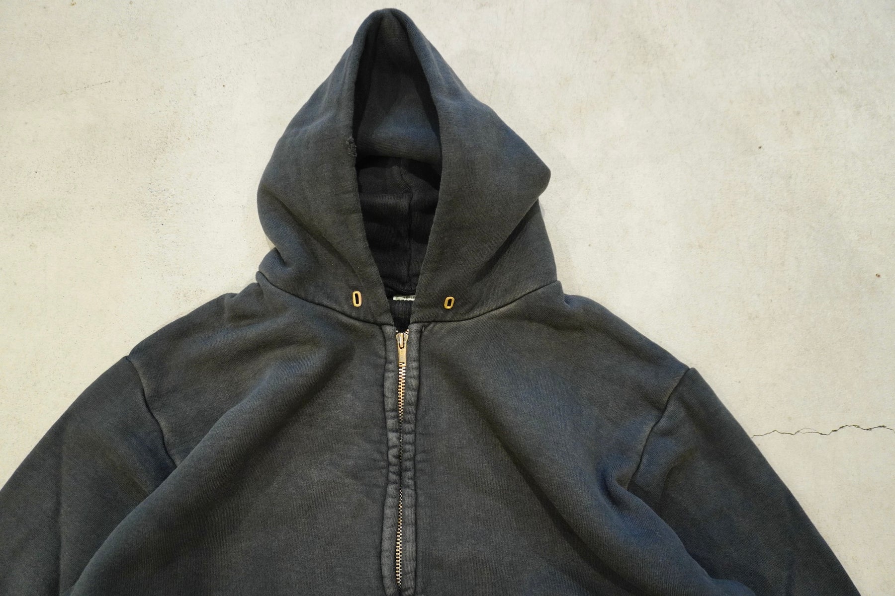 【素材】表地はヴィンテージを解析して作った吊り裏毛、1時間に1メートルというゆっくりとしたスピードでしか編み立てられないが、糸に余計な負荷を掛けないで編み上げることで、肉厚ながら固くならず、ふっくらとした風合いで仕上げた