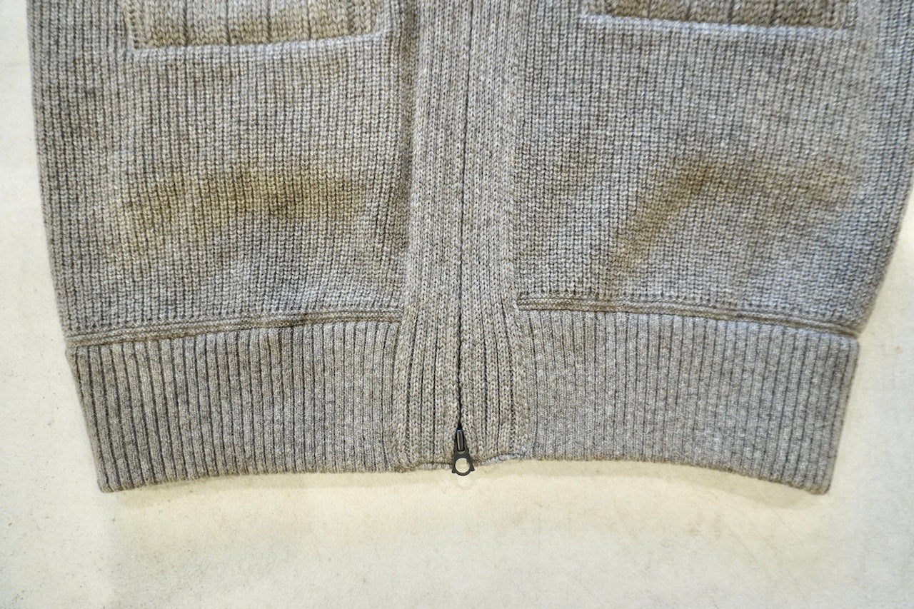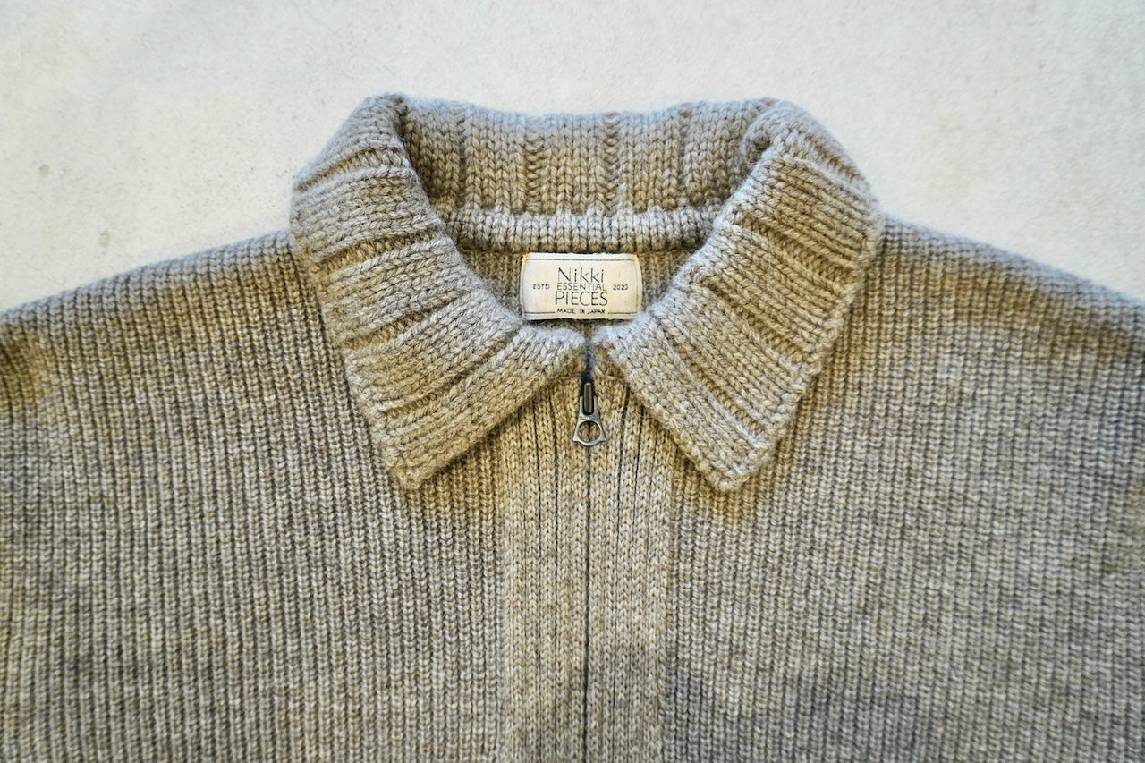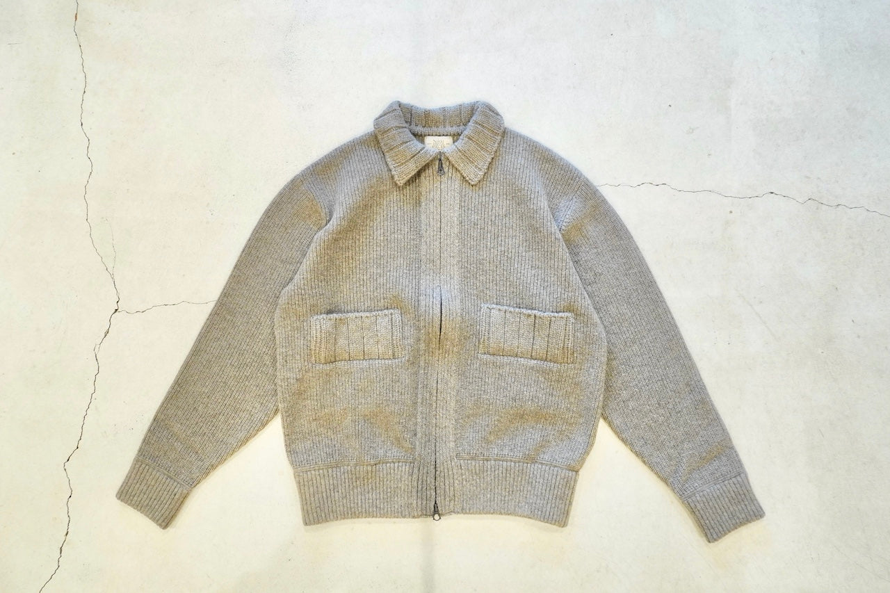 ヤクの糸にウールカシミヤの糸を撚糸することで更に膨らみを増し、バルキーな編み地で作成したニットブルゾン。