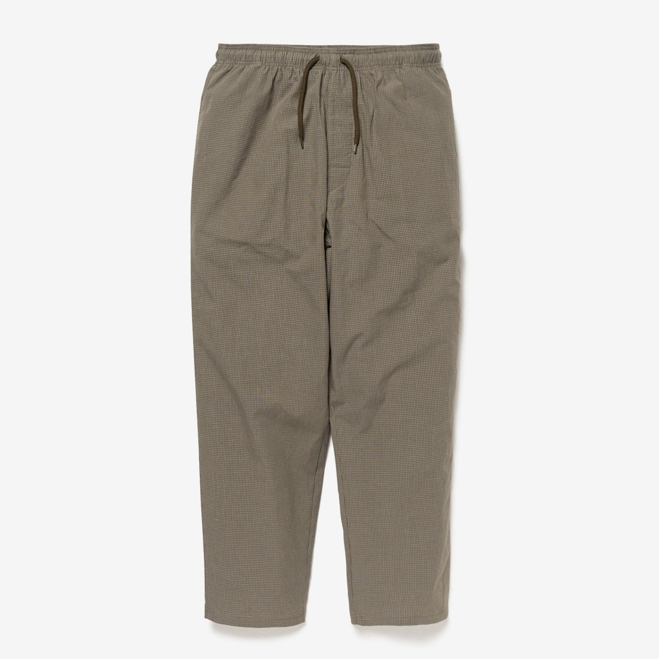 ハリ感とドライな風合いが特徴のワッシャーウェザー生地を使用したイージーパンツ。ややテーパードしたワイドシルエット。フロントは重ね合わせの開閉仕様で、ウエストは内蔵されたドローコードで調節可能。