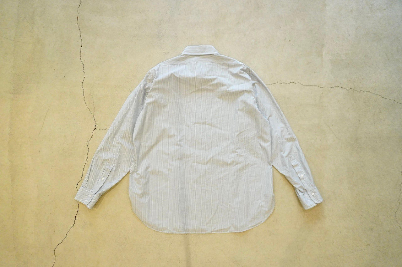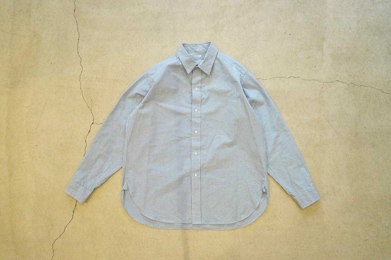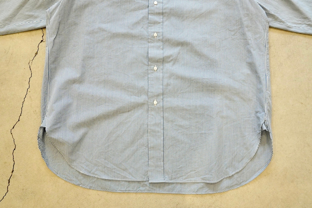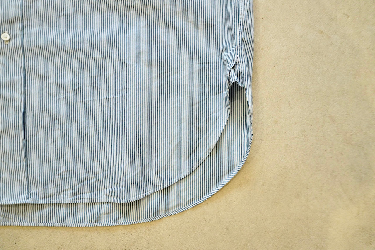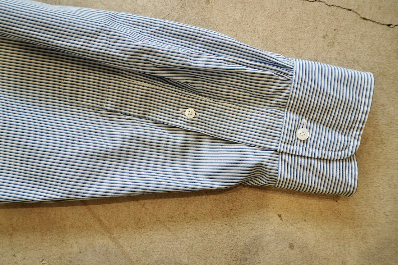 【素材】経糸は細番手のギザコットン、緯糸は細番手のスーピマコットンと、経緯ともに細番手の超長綿糸を使用して、高密度に織り上げたマイクロストライプ