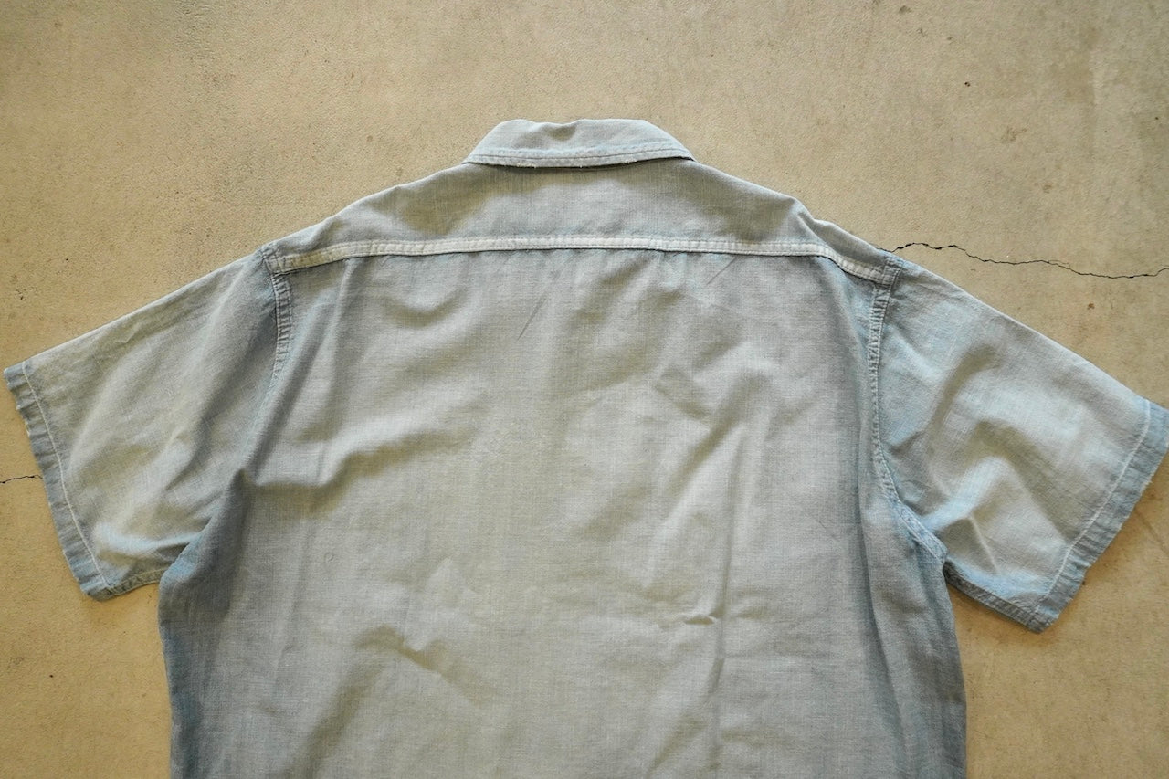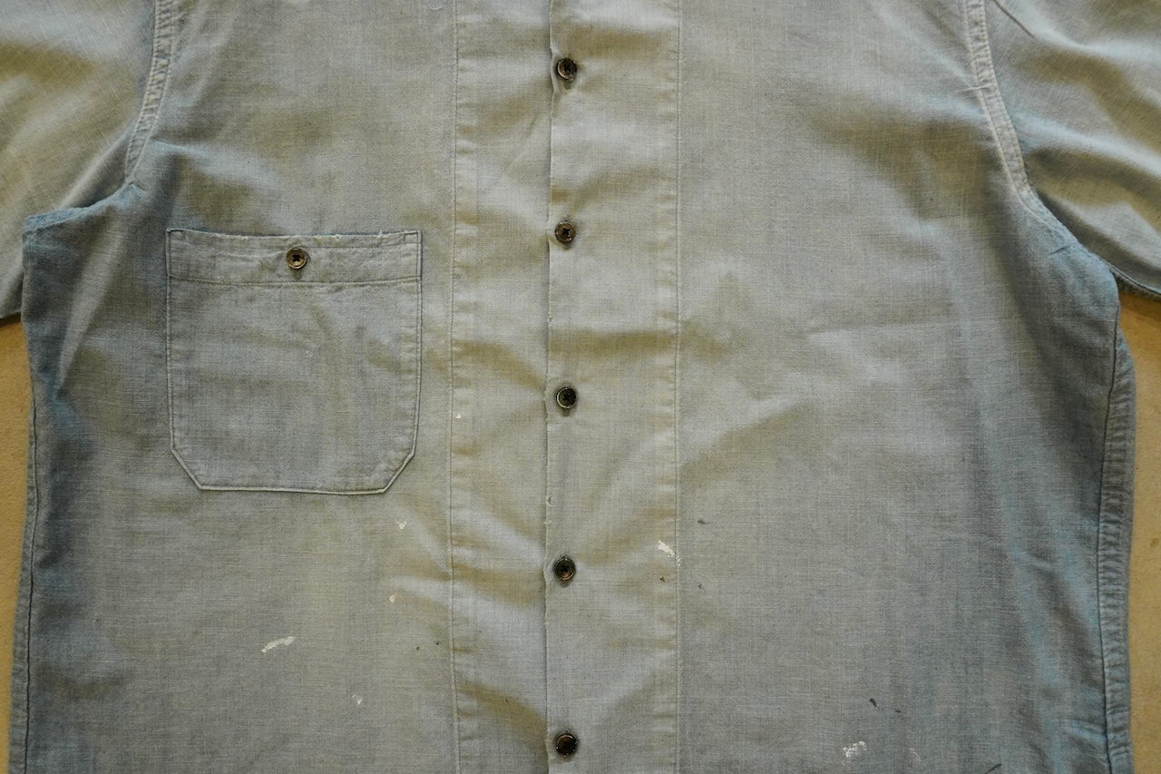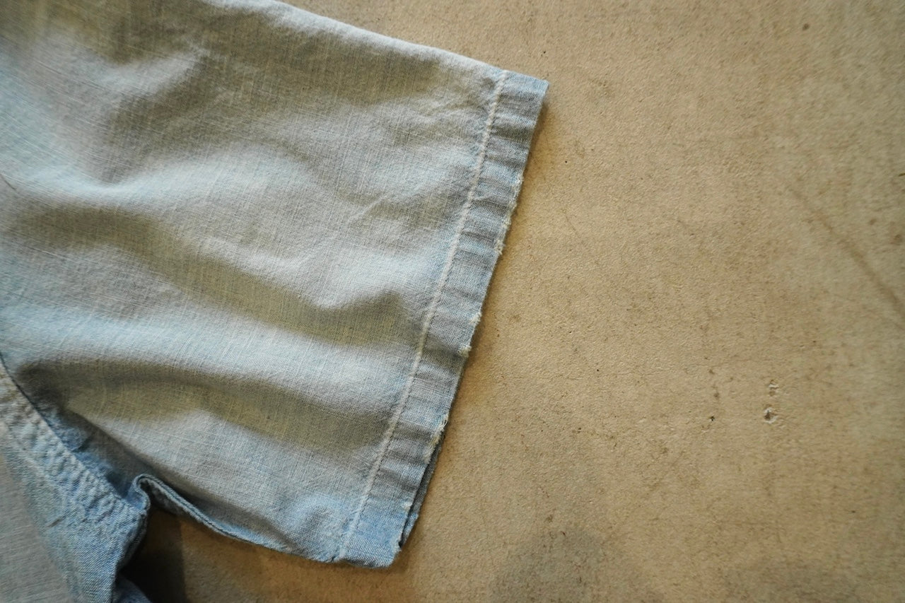 【素材】50'sの古着 をベースに約50年以上の経年変化・劣化をして糸がやせてしまった生地感風合いを再現したのセルヴィッチシャンブレー