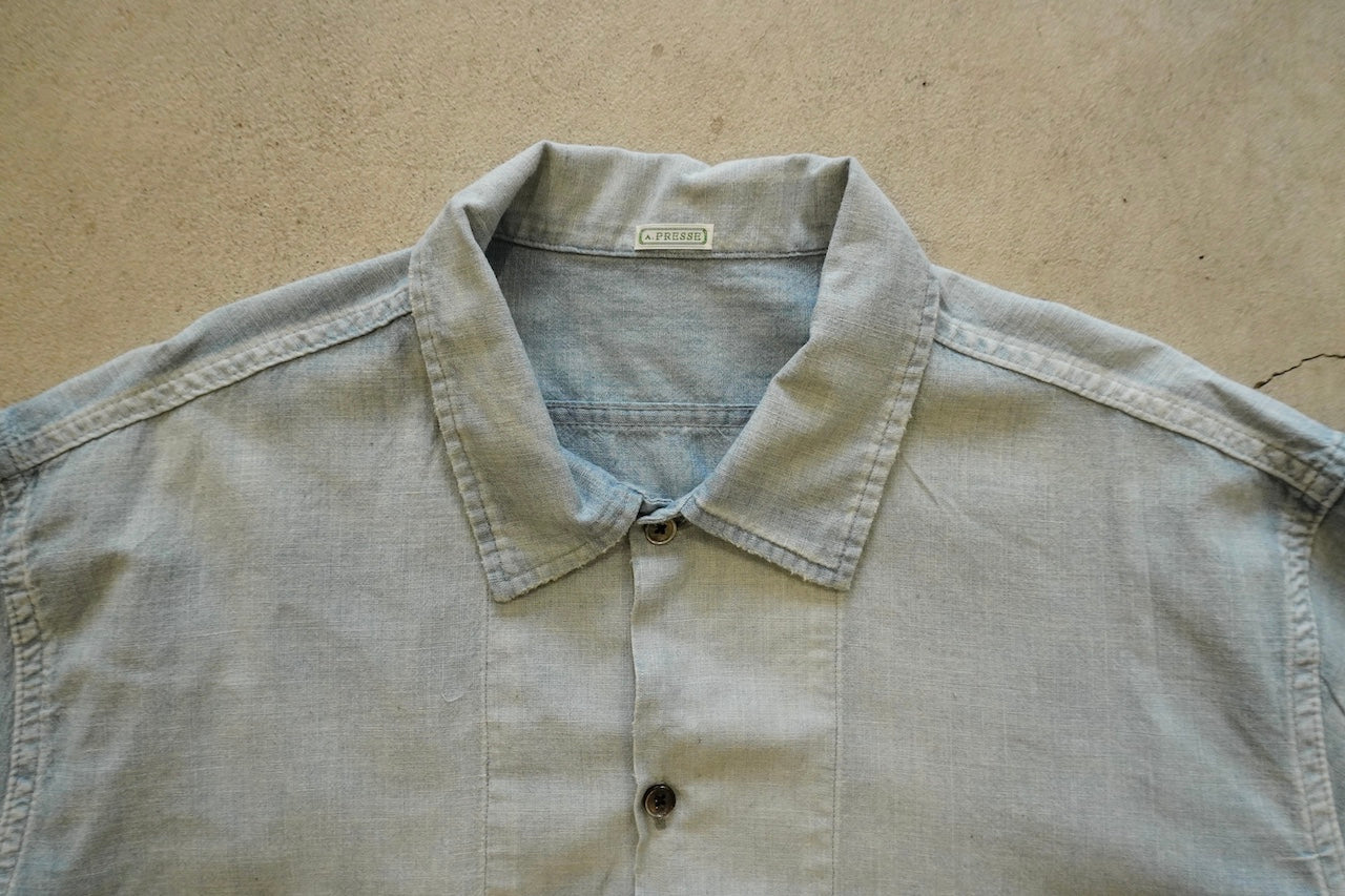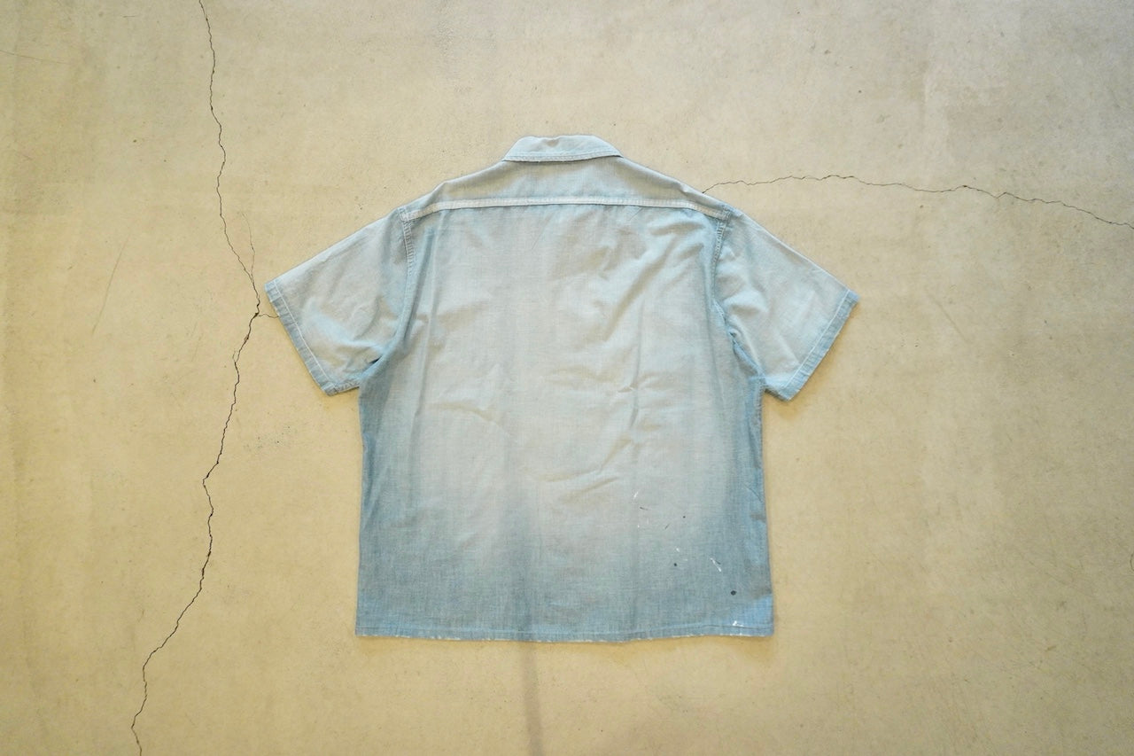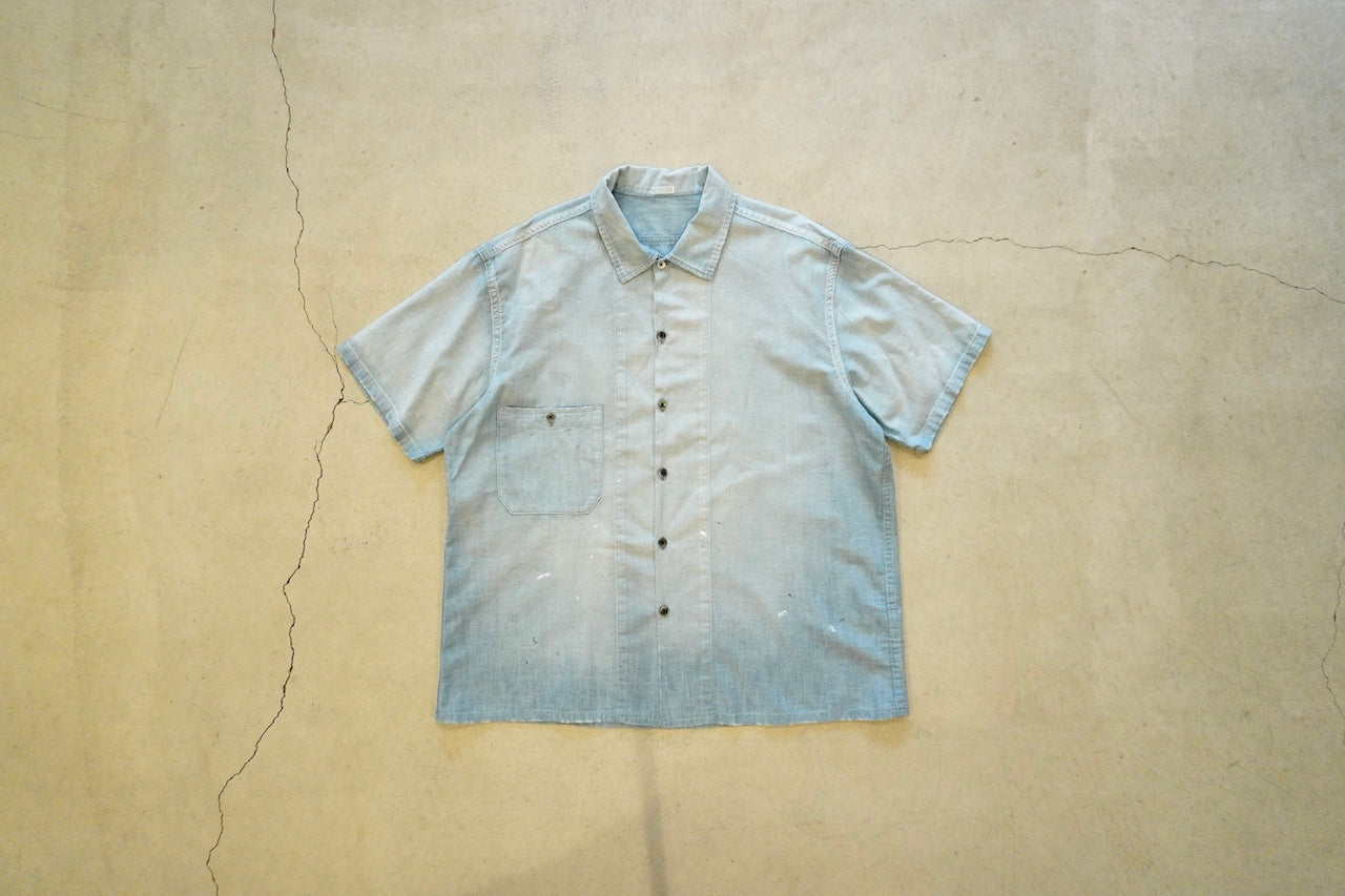 【素材】50'sの古着 をベースに約50年以上の経年変化・劣化をして糸がやせてしまった生地感風合いを再現したのセルヴィッチシャンブレー