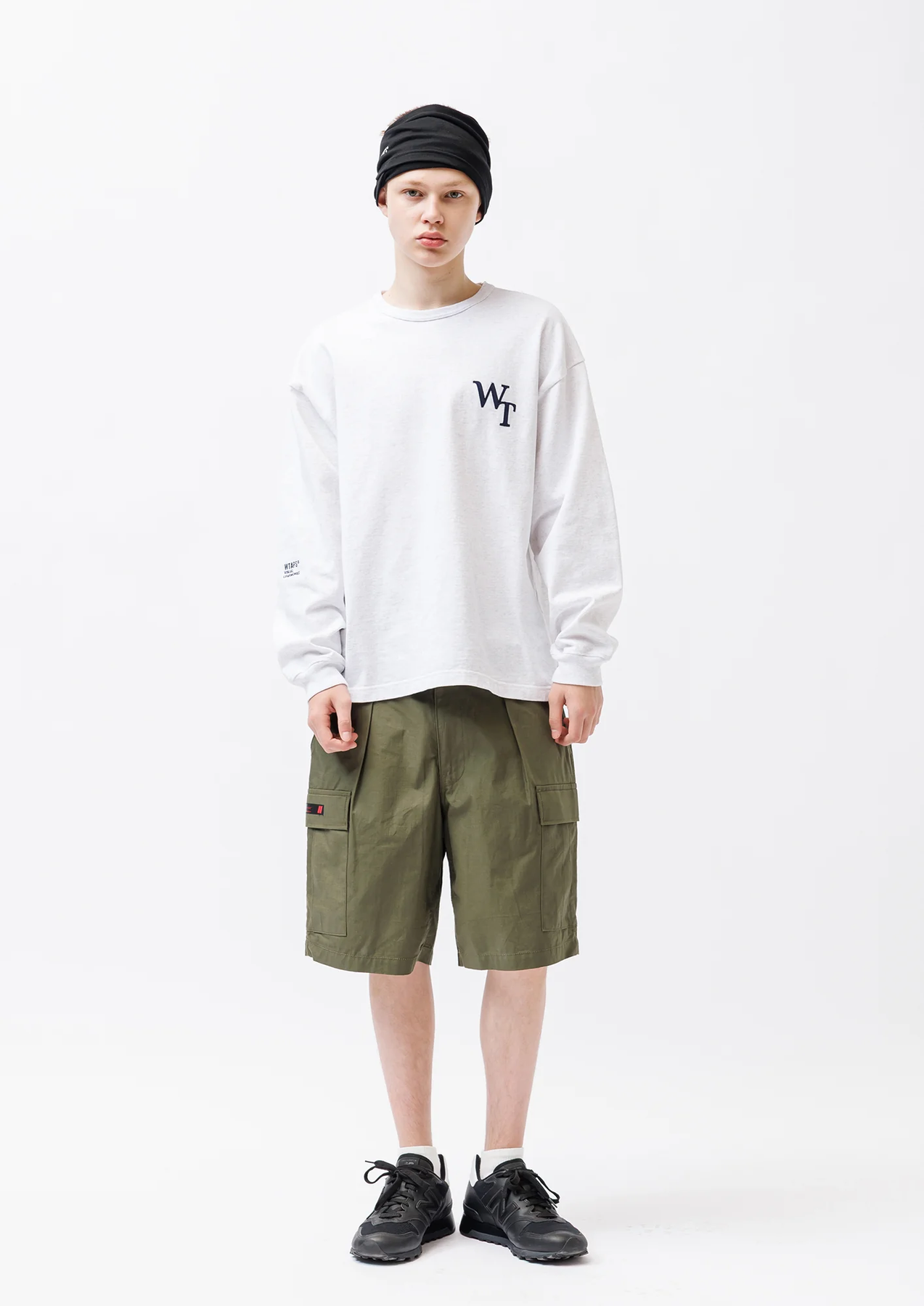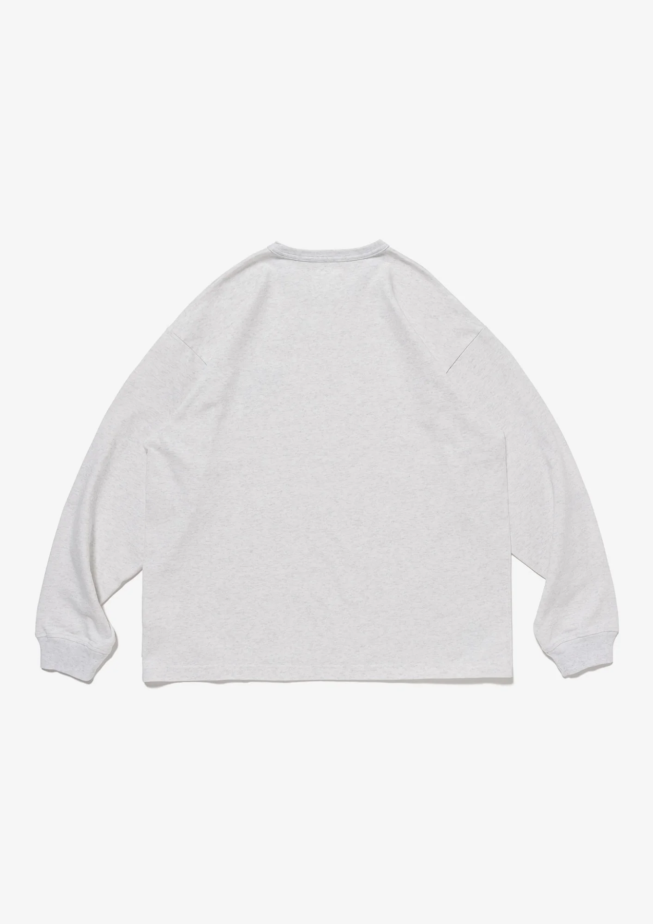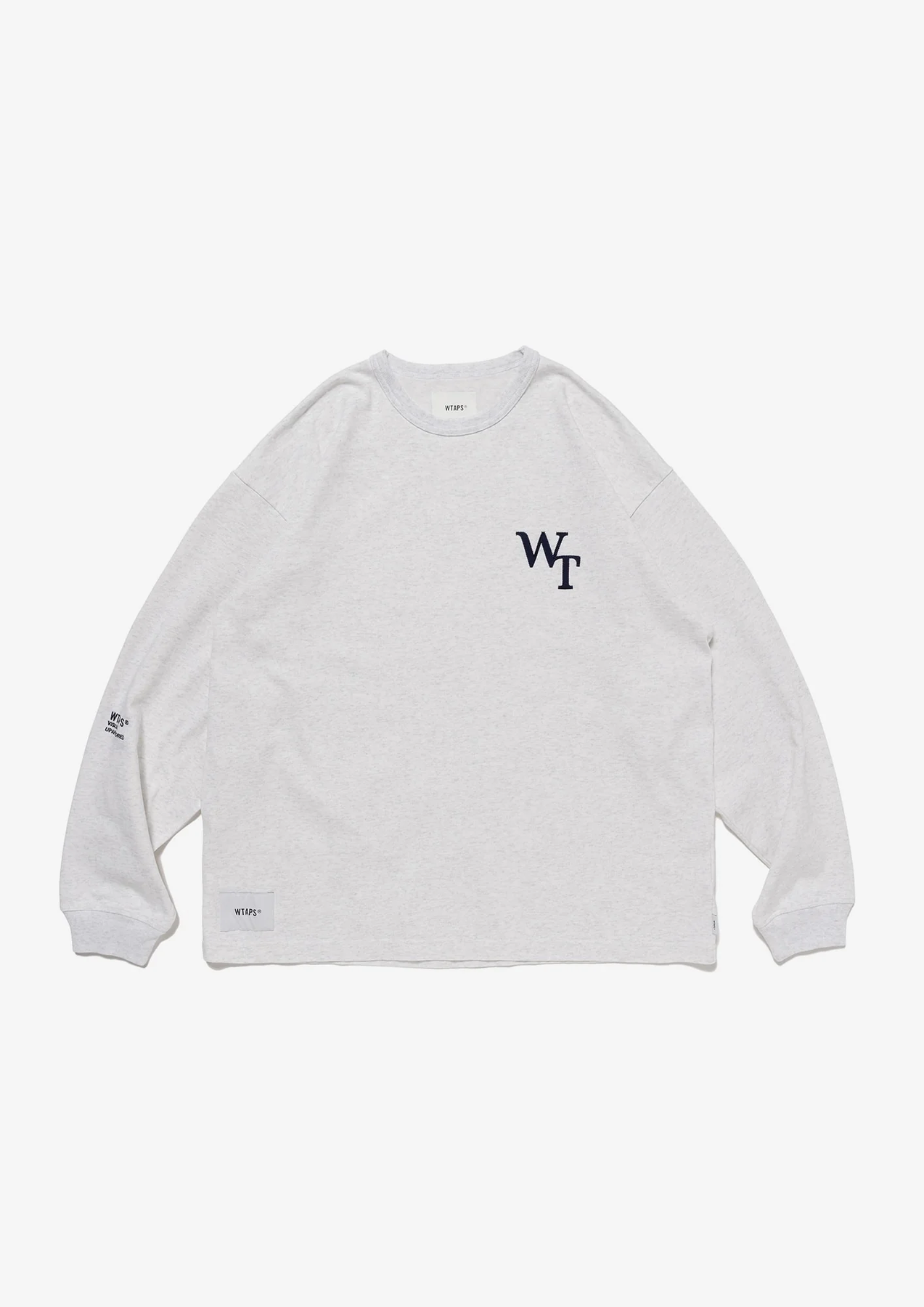 2重構造のプレーティング天竺を使用したロングスリーブカットソー。フロントにアップリケモチーフを配置。