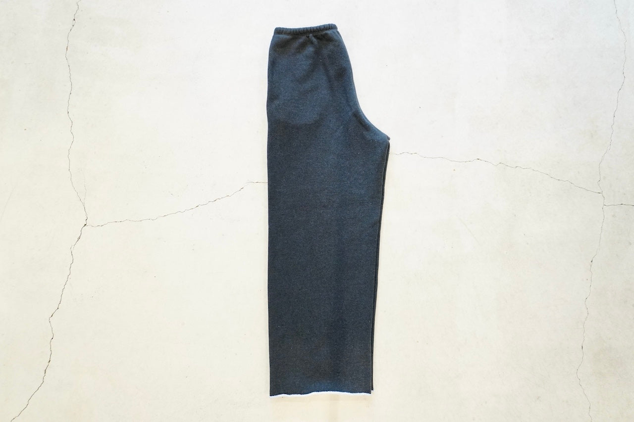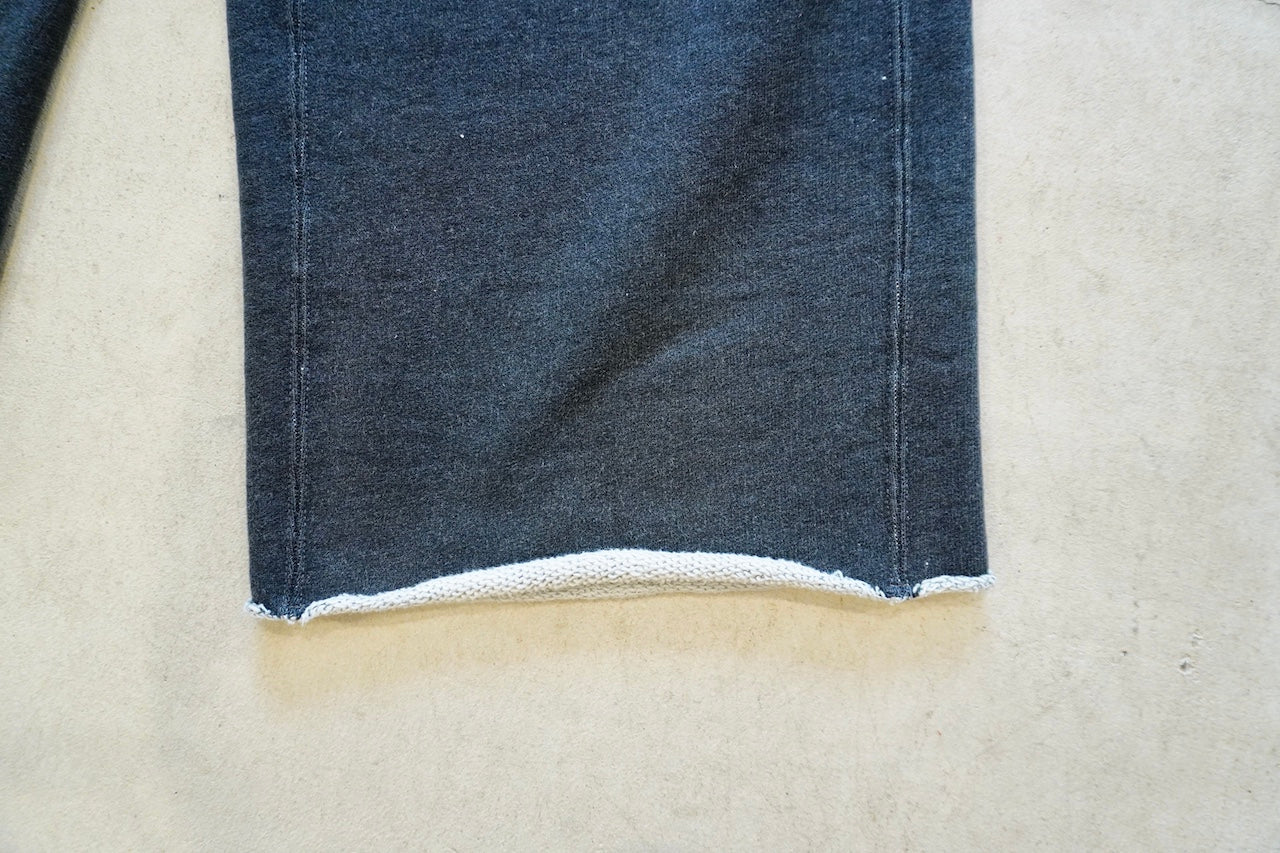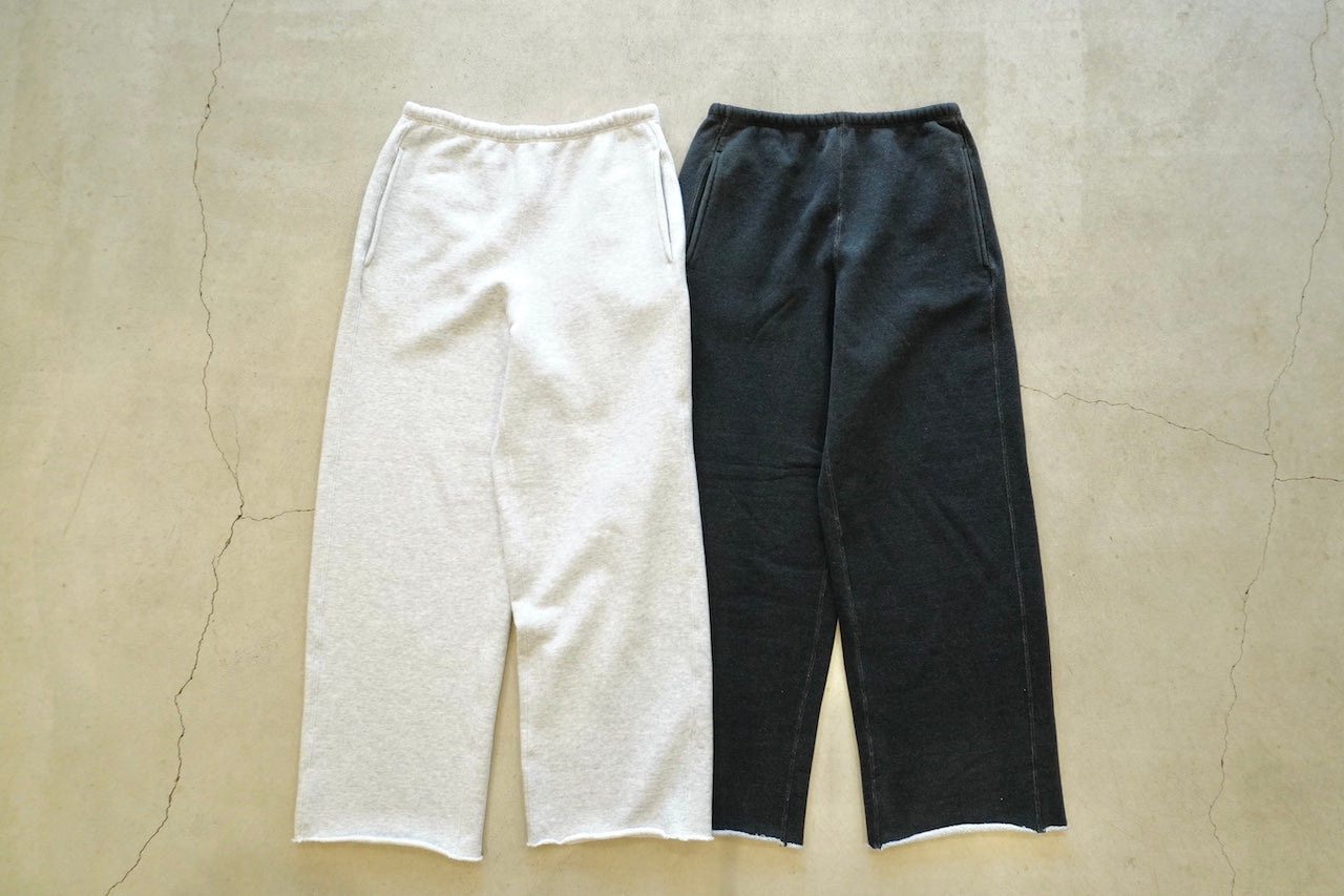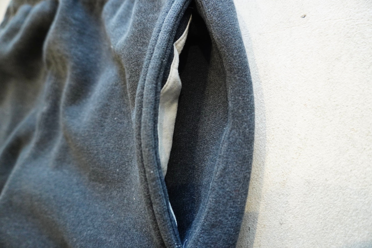 しっかり目が詰まった裏毛に、ライトグレーは生地でブリーチを入れて通常の色展開にはない薄いトップグレーを。チャコールは製品でブリーチ加工を入れて古着っぽいイメージで仕上げました。裾はカットオフ仕様。